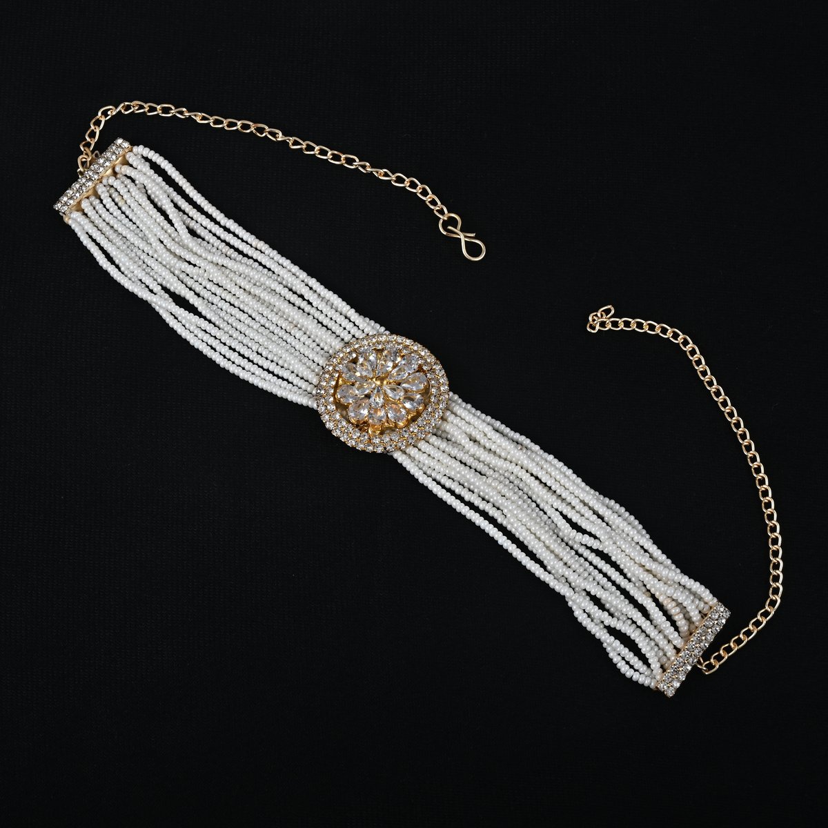 Add a royal touch to your look with this floral pearl choker set – a timeless treasure that speaks of elegance and tradition.